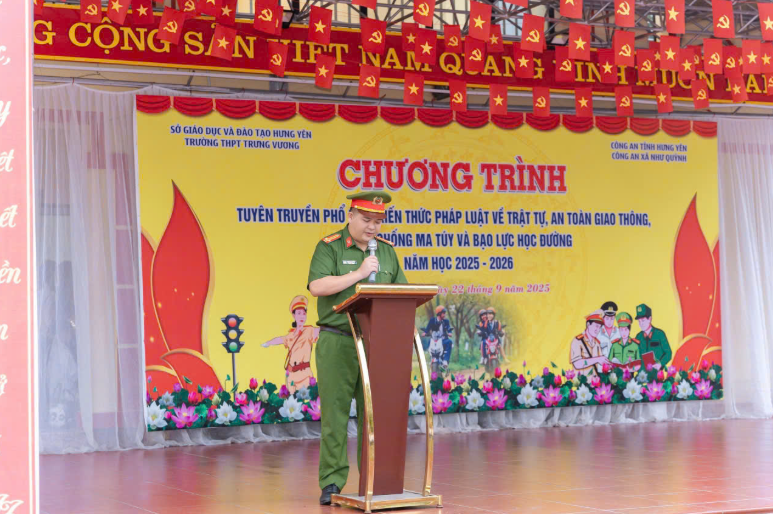 Công an xã Như Quỳnh tuyên truyền pháp luật về an toàn giao thông, phòng chống tội phạm, tệ nạn ma túy và bạo lực học đường tại Trường THPT Trưng Vương(25/09/2025)