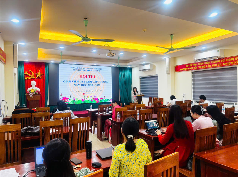 Thực hiện Kế hoạch số: 190/KH-THPTTV - Kế hoạch giáo dục nhà trường năm học 2025-2026; Kế hoạch số 205/KH-THPTTV ngày 25/09/2025 của trường THPT Trưng Vương về Kế hoạch tổ chức Hội thi giáo viên dạy giỏi cấp trường năm học 2025-2026. Trường THPT Trưng Vương đã tiến hành tổ chức Hội thi giáo viên dạy giỏi cấp trường từ ngày 09/10/2025 đến 17/10/2025