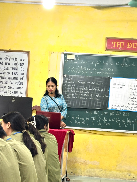 Cô giáo Hà Thị Quỳnh Giao với phần thi thực hành giảng