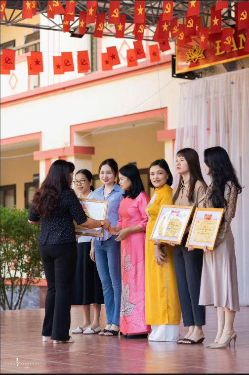 Cô Nguyễn Thị Thu Hiền - Hiệu trưởng nhà trường tặng giấy khen cho các Thầy/Cô đạt giáo viên dạy giỏi cấp trường năm học 2025-2026